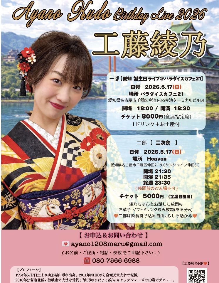 OPEM/18:00Start/18:30チケット/¥8,000(全席指定)(1ドリンク+お土産付き)