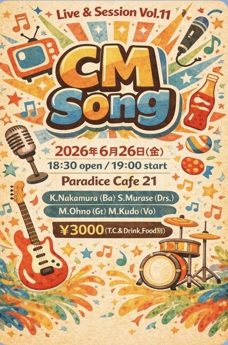 OPEM/18:00Start/19:00MC/¥3,000(TC¥500 飲食代別途)