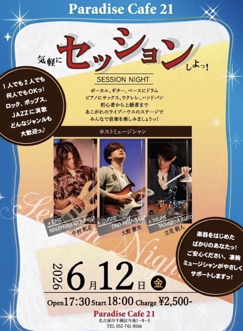 名古屋市千種区今池のライブハウス、パラダイスカフェ21。ライブは勿論、発表会、プチコンサート、貸切パーティーなど使い方は自由!ライブ配信もできるので、より沢山の方に、たのしんでいただけます。